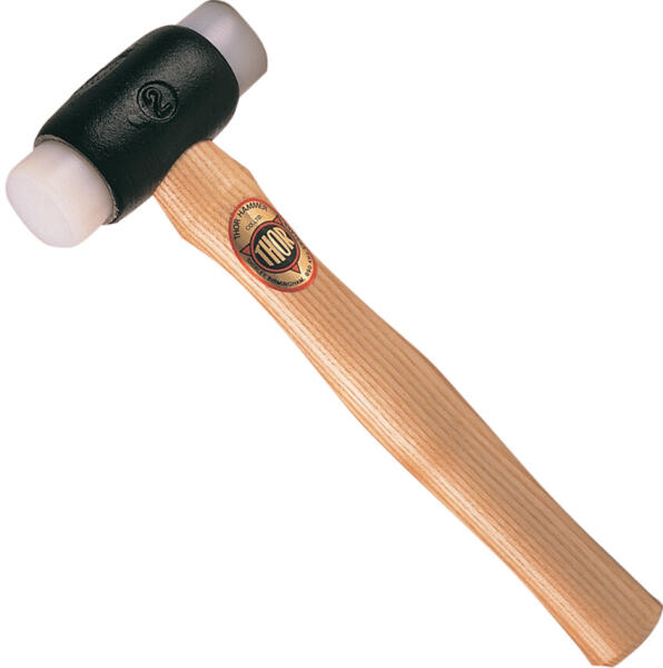 Kovácsoltvas fej fehér, kemény polieténből készült műanyag betéttel nagy erejű ütésekhez.