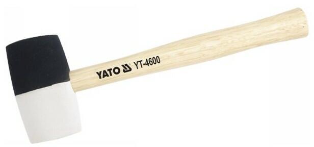 A YATO kétszínű gumikalapács (fekete-fehér) kör alakú feje oldalanként különböző keménységű a színeknek megfelelően. A gumibetét nem károsítja az ütött anyagot, nem hagy nyomot maga után. Fa lakkozott nyéllel készül, mely csillapítja az ütések erősségét. A gumikalapács csúszásgátló felületkezeléssel ellátott nyele könnyű használatot biztosít. Olyan területeken alkalmazható, ahol az acélkalapács nem használható a felület sérülékenysége miatt. A kalapács a különféle szakmunkák legalapvetőbb felszerelése, és a ház körüli teendők is elképzelhetetlenek nélküle. Ellenáll a nedvességnek.
