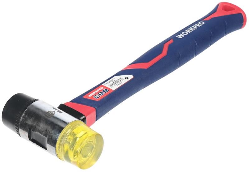 Ez a WORKPRO kétoldalas kalapács üvegszálas nyéllel rendelkezik, és egyszerre két funkciót lát el. Az átlátszó gumiból készült oldal finom és kíméletes használatra alkalmas, ha nem szeretné megsérteni az anyagot. Az acél oldal pedig erősebb ütéseknél, például szögek beverésénél hasznos.